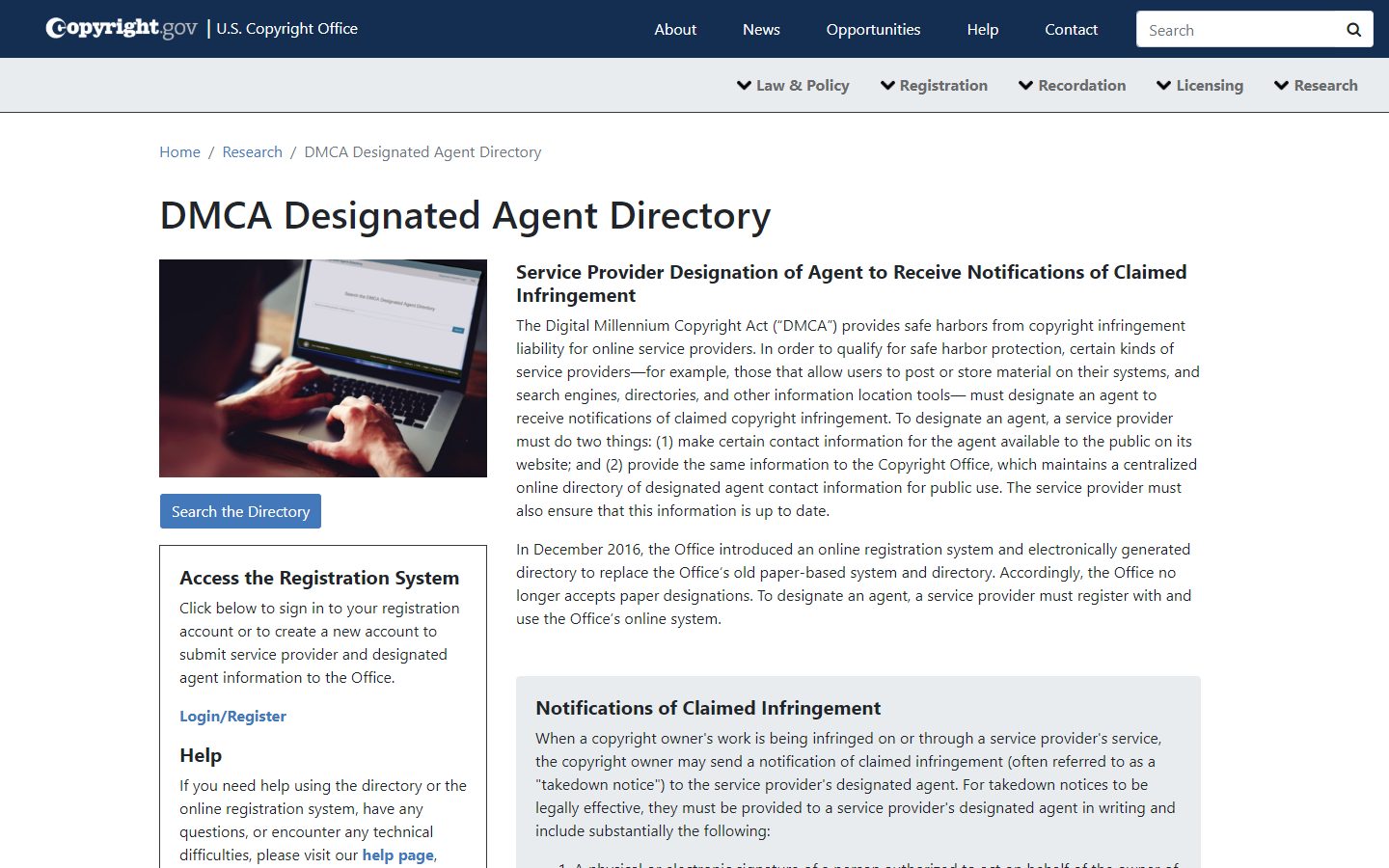 For each hosting provider identified in Step 1, send your DMCA notice to their designated agent. The official US registry of DMCA agents is at dmca.copyright.gov.