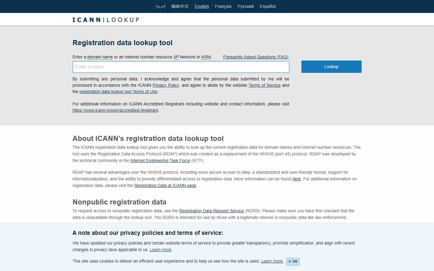 - WHOIS lookup: lookup.icann.org — shows registrar and hosting details